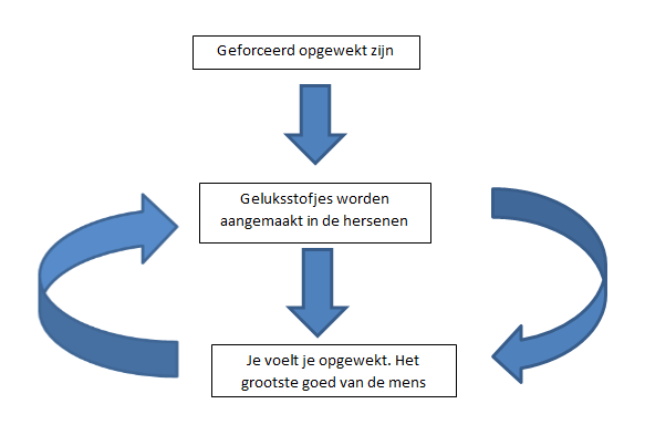 Het enige wat jij moet doen is een muntje in de machine gooien door geforceerd opgewekt te zijn of op een potlood te bijten. Vervolgens kom je in een loop van opgewektheid terecht.